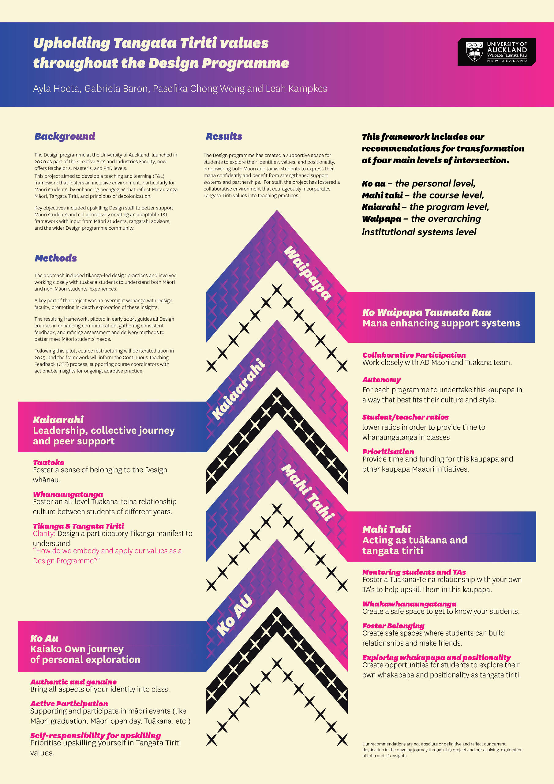 Framework: Capacity building to attract and ensure Maaori student success, upholding Tangata Tiriti values throughout the Design Programme.