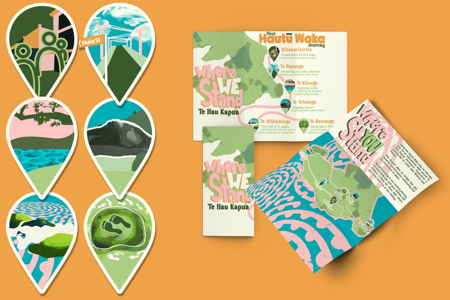 Where We Stand was created in response to the lack of connection between people and the land particularly in urban and suburban areas. Where We Stand is an interactive experience designed to inspire the public to delve into the history of the places on which they stand and the significance of certain sites to tangata whenua.